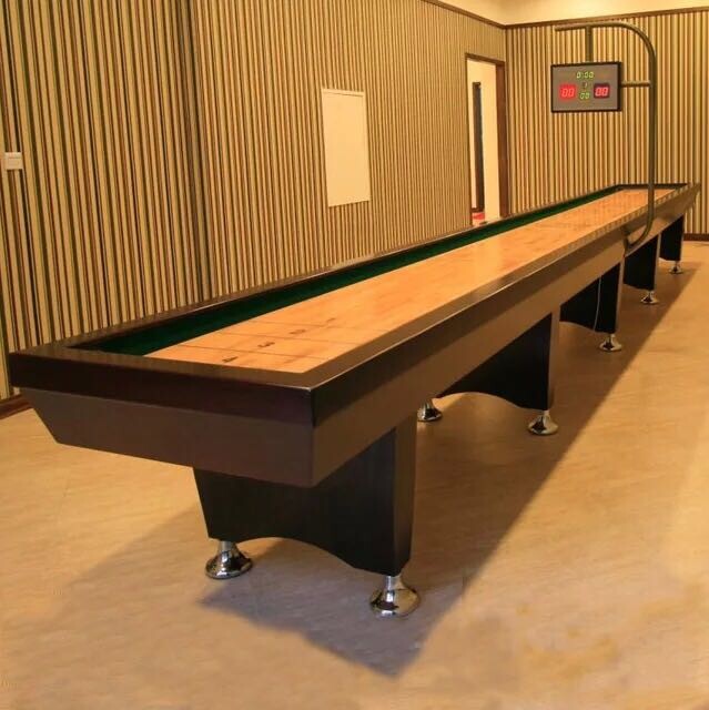 沙狐球的基本玩法是双方轮流将壶推向长桌的尽头,每局8球。在每一轮比赛中,当球全部推出后,推出最远的球为本轮的胜方。